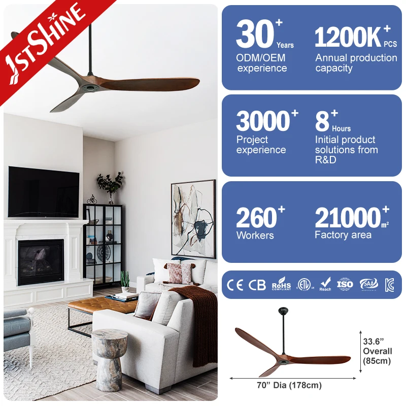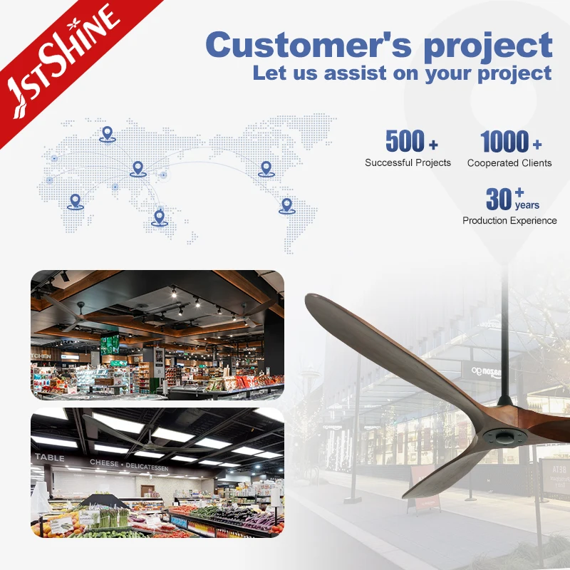 1stshine Ceiling Fan Large Room 3 Solid Wood Blades OEM Downrod Fancy Ceiling Fan